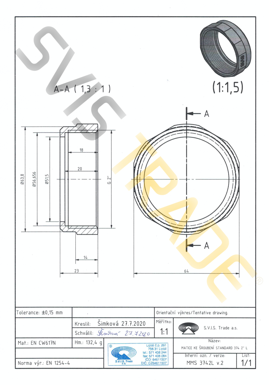 | Normy: | ČSN EN 10242, ČSN ISO 7-1 |