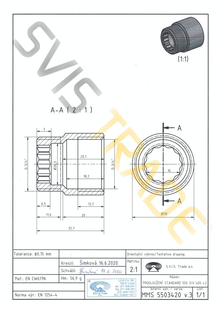 Tvarovka z mosadze CW617N. Určená pre spájanie so závitom ISO 228-1. Prevedenie: bez povrchovej úpravy.