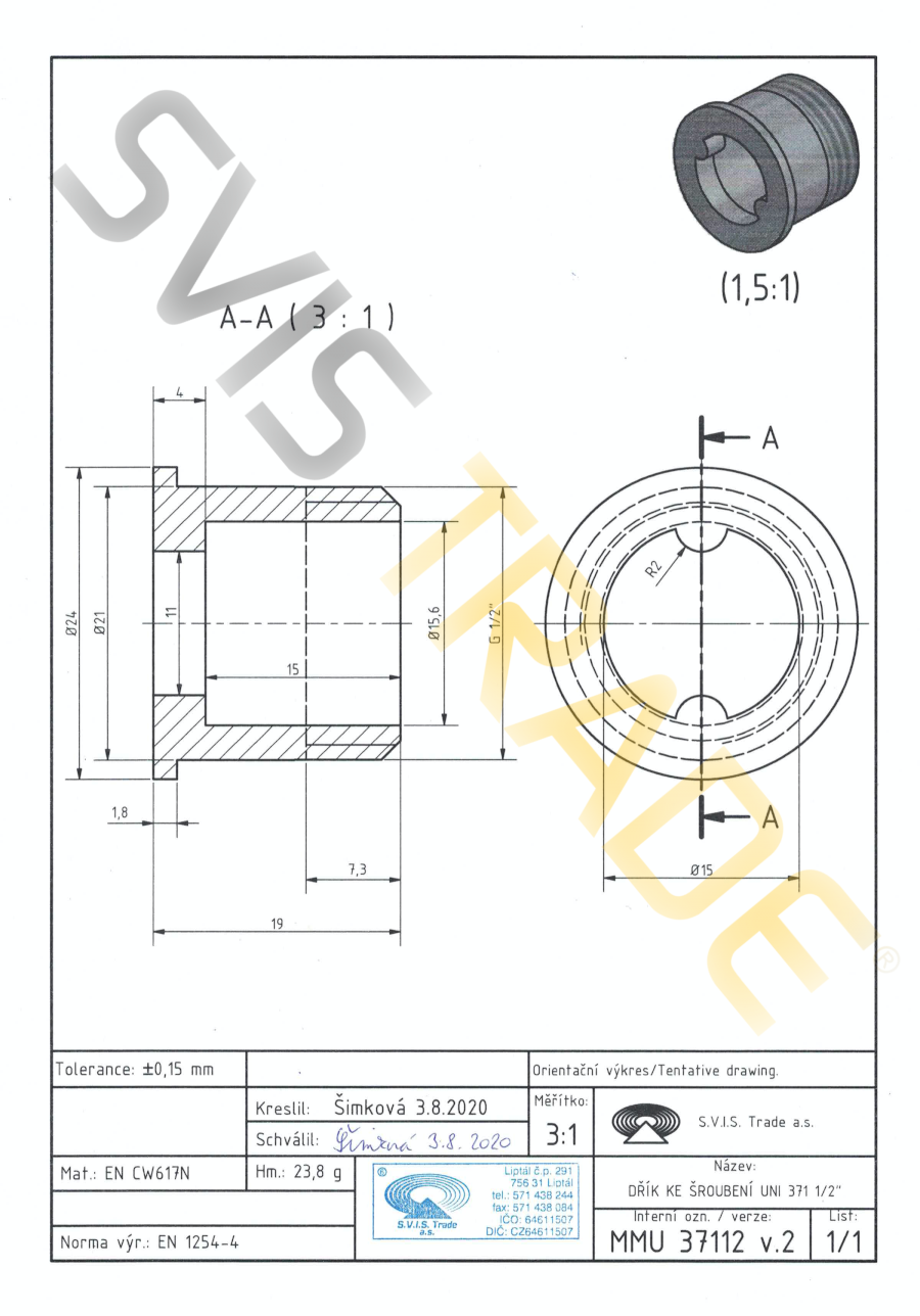 | Normy: | ČSN EN 1254-4, ČSN EN ISO 228-1 |