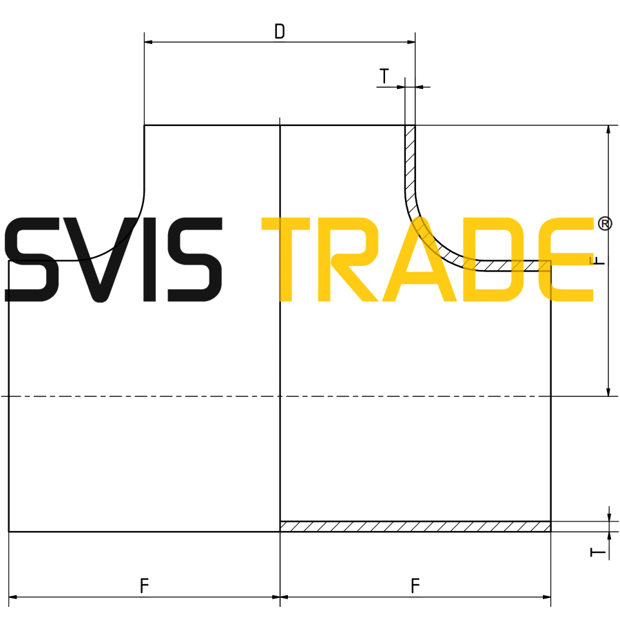 Szénacélból készült idom csővezetékek összekötésére használható tompa hegesztéssel. Fajta – T-idom azonos méretű csőcsatlakozókkal. Fekete kivitelben kapható vékony réteg olaj bázisú tartósítószerrel kezelve. EN 10253-1 szabvány szerint gyártva.