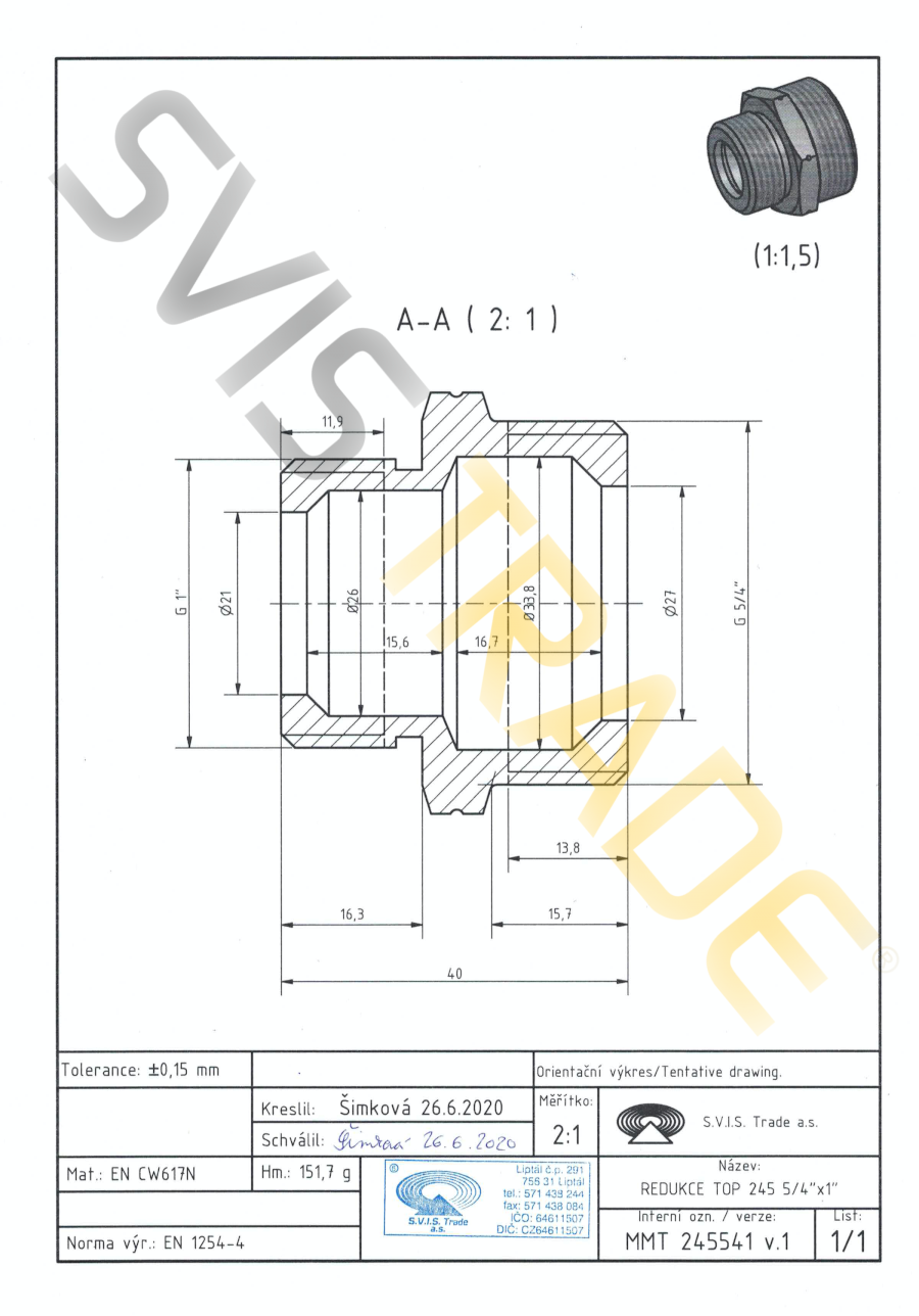 | Normák: | ČSN EN 1254-4, ČSN EN ISO 228-1 |