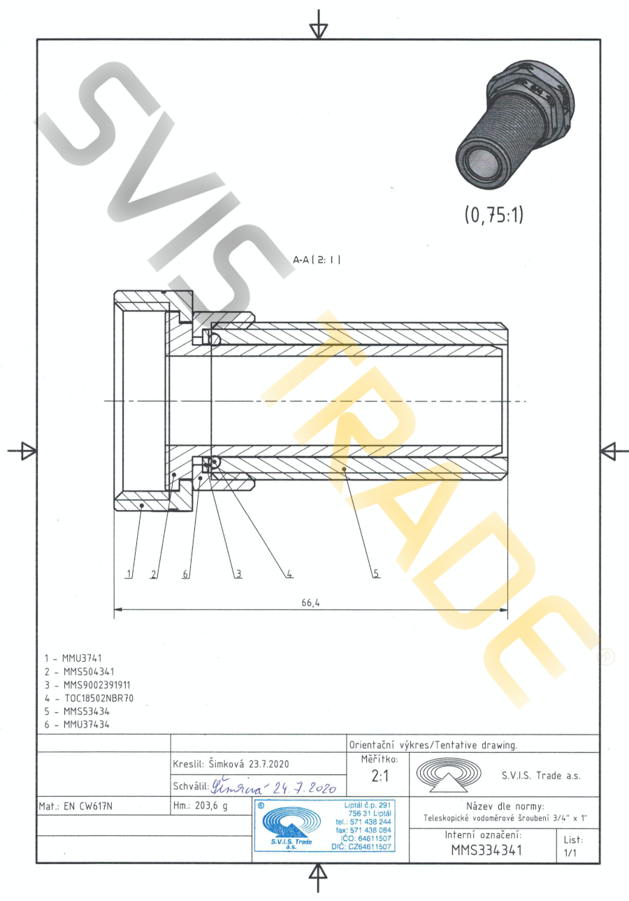 Mosiężny śrubunek z regulowaną wkładką MF - 334 MMS-STANDARD. Wyprodukowana według normy EN 1254-4 - gwintowana mosiężna złączka. Śrubunek składa się z następujących części: 334 = 504 + 2x374+534 + 900 + TOC Uwaga! Śrubunek powinien być zamontowany jako całość, ponieważ części tych samych śrubunków, ale innych marek mogą nie być wykorzystywane zamiennie! Bez obróbki powierzchniowej. S.V.I.S Trade-czeski producent kształtek jest posiadaczem certyfikatów ISO 9001,ISO 14001,OHSAS 18001. Na mosiężne kształtki stosujemy ubezpieczenie szkody na całym terytorium EU. Zaprojektowane do dystrybucji wody,wody pitnej,powietrza,nieabrazyjne i nie agresywne media do dopuszczalnego ciśnienia 1,6 MPa i temperatury od -20°C do 120 °C, z koniecznością uniknięcia zamrożenia mediów. Seria kształtek STANDARD-spełnia wyższe wymagania dla połączeń gwintowanych. Mosiężne kształtki są produkowane z mosiądzu CW617 N. Jako materiał uszczelniający do montażu złączek mosiężnych zaleca się uzywanie taśmy teflonowej lub przewodu teflonowego. Producent NIE ZALECA używania konopi jako materiał uszczelniający. Zalecenia dla instalacji: dystrybucja wody,dystrybucja wody pitnej,dystrybucja ciepła,powietrza.