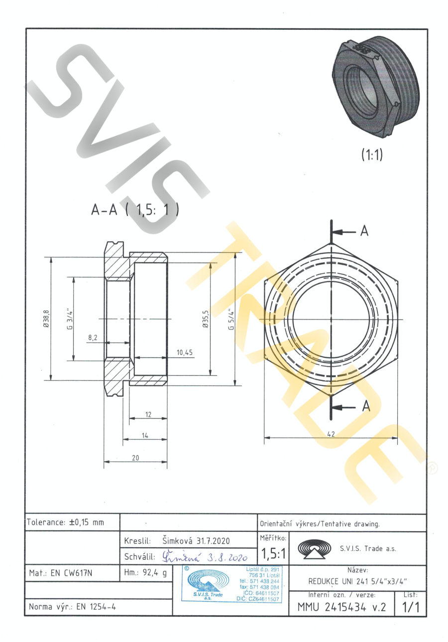 Mosiężna redukcja MF - 241 MMU-UNIVERSAL. Wyprodukowana według normy EN 1254-4 - gwintowana mosiężna złączka. Bez obróbki powierzchniowej. S.V.I.S Trade-czeski producent kształtek jest posiadaczem certyfikatów ISO 9001,ISO 14001,OHSAS 18001. Na mosiężne kształtki stosujemy ubezpieczenie szkody na całym terytorium EU. Zaprojektowane do dystrybucji wody,wody pitnej,powietrza,nieabrazyjne i nie agresywne media do dopuszczalnego ciśnienia 1,6 MPa i temperatury od -20°C do 120 °C, z koniecznością uniknięcia zamrożenia mediów. Seria kształtek UNIVESRAL - spełniają standardowe wymagania dotyczące połączeń gwintowych Mosiężne kształtki są produkowane z mosiądzu CW617 N. Jako materiał uszczelniający do montażu złączek mosiężnych zaleca się uzywanie taśmy teflonowej lub przewodu teflonowego. Producent NIE ZALECA używania konopi jako materiał uszczelniający. Zalecenia dla instalacji: dystrybucja wody,dystrybucja wody pitnej,dystrybucja ciepła,powietrza.