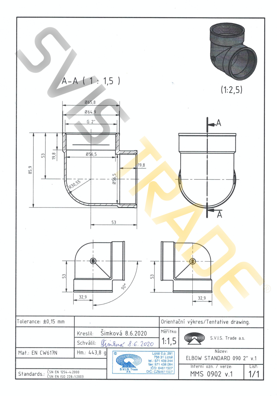 | Norme: | ČSN EN 1254-4, ČSN EN ISO 228-1 |