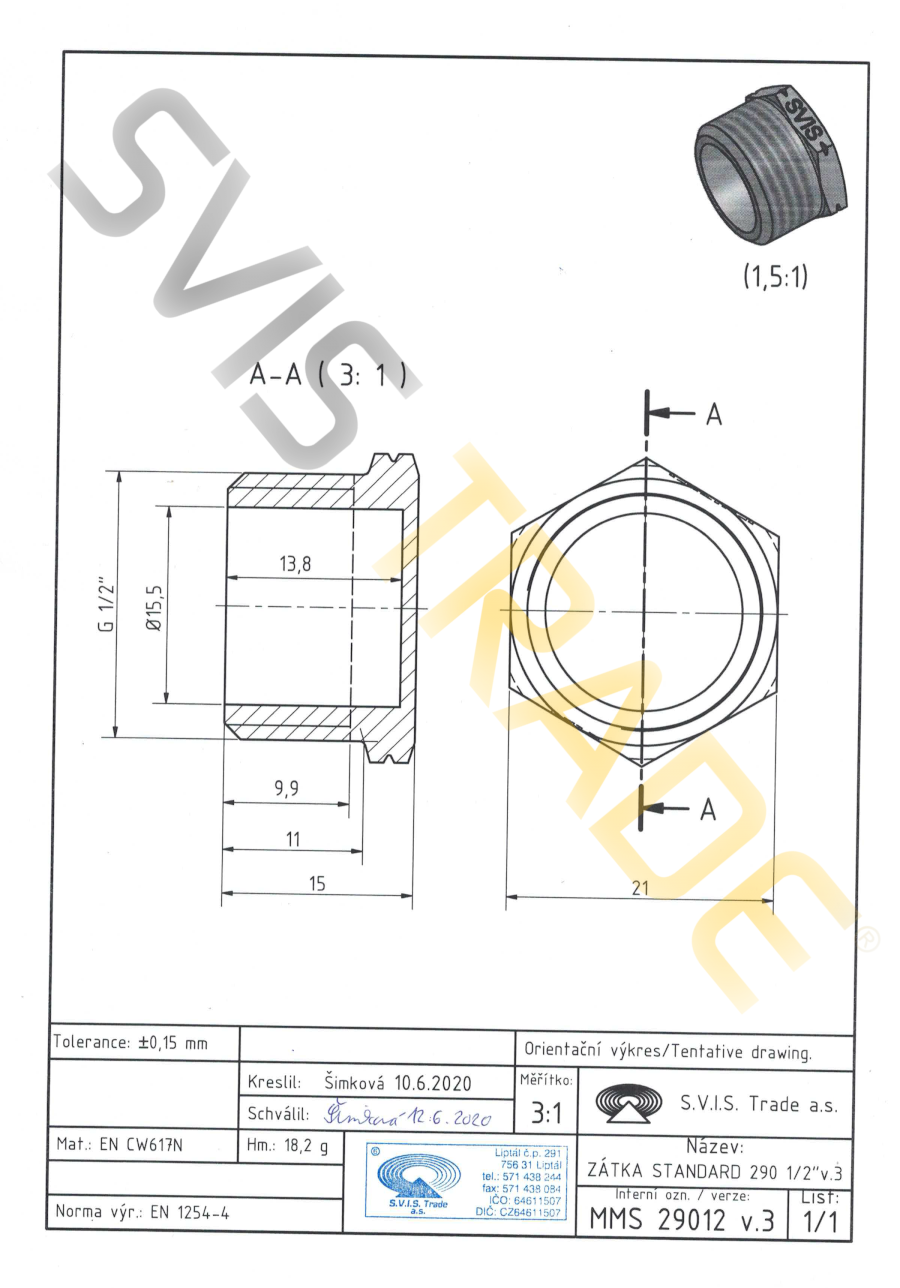 Filetul fitingurilor din alama,tip-dop cu hexagon,cu filetele tevii exterioare,fara tratament de suprafata.Conectarea filetelor G,sunt paralele pentru unirea(imbinarea) nu etansarea pe filete in conformitate cu ISO 228-1.Produse in conformitate cu EN 1254-4.