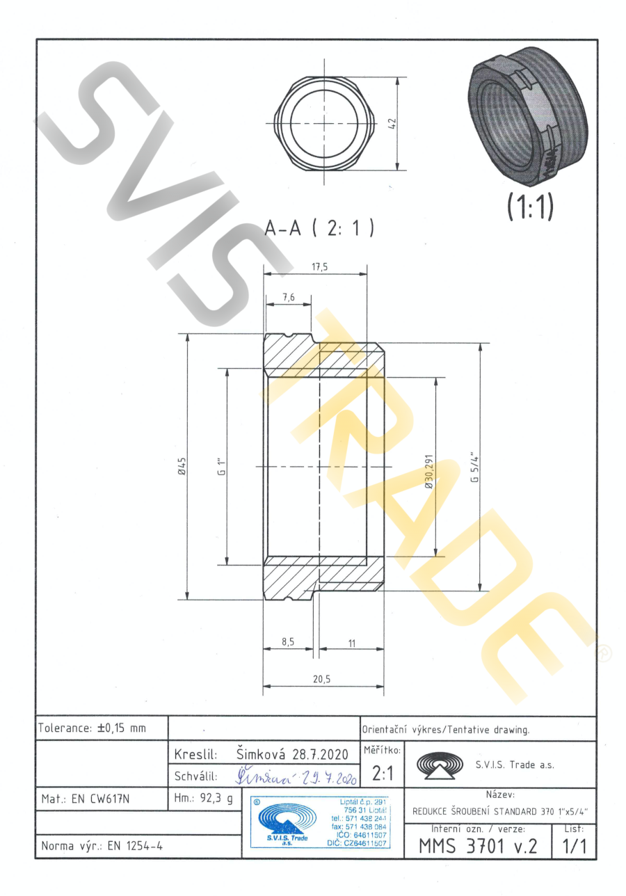 | Norme: | ČSN EN 1254-4, ČSN EN ISO 228-1 |