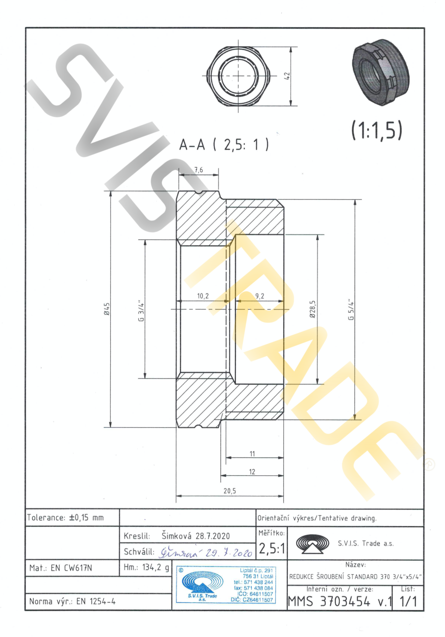 | Norme: | ČSN EN 1254-4, ČSN EN ISO 228-1 |