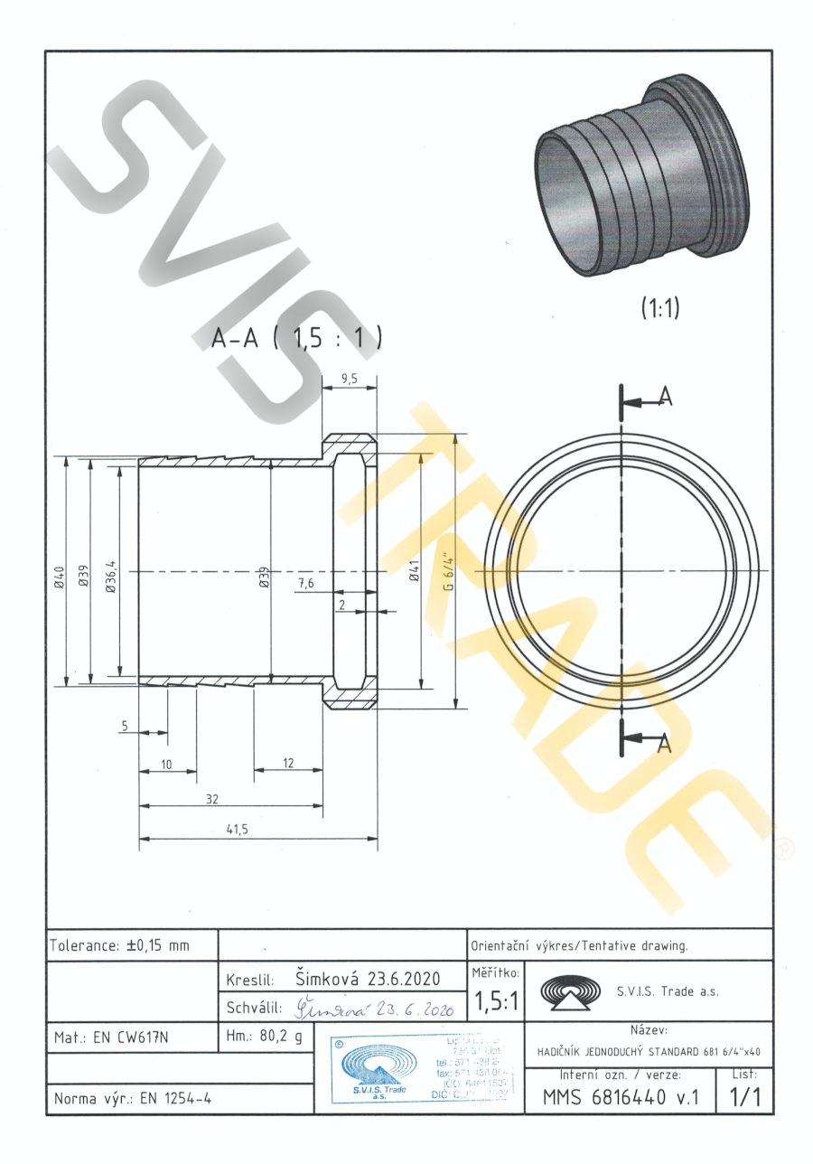 S.V.I.S. Comerț a.s. - producător ceh de accesorii este certificat ISO 9001, ISO 14001, OHSAS 18001. de fitinguri din alama sunt acoperite de asigurare pentru daune pe teritoriul UE.