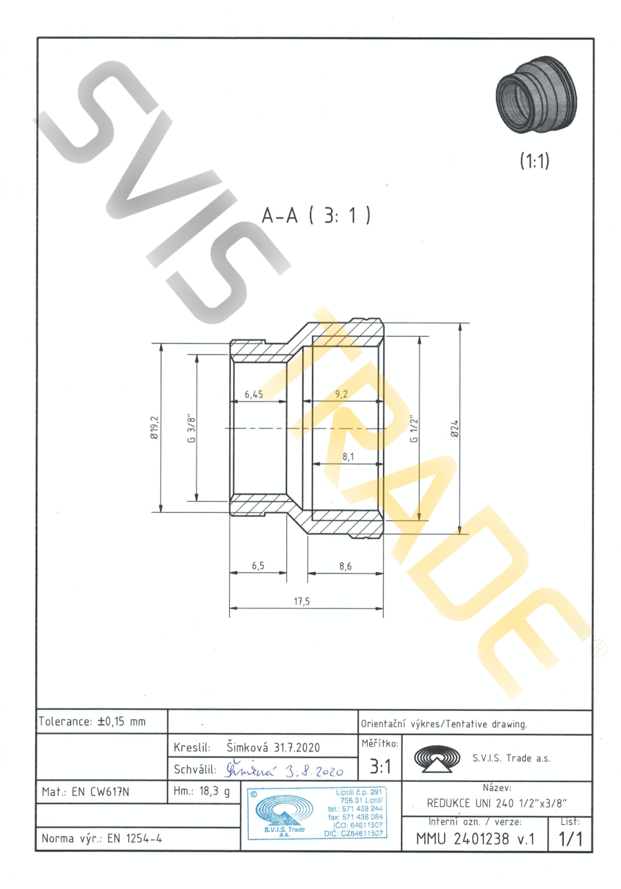 | Norme: | ČSN EN 1254-4, ČSN EN ISO 228-1 |