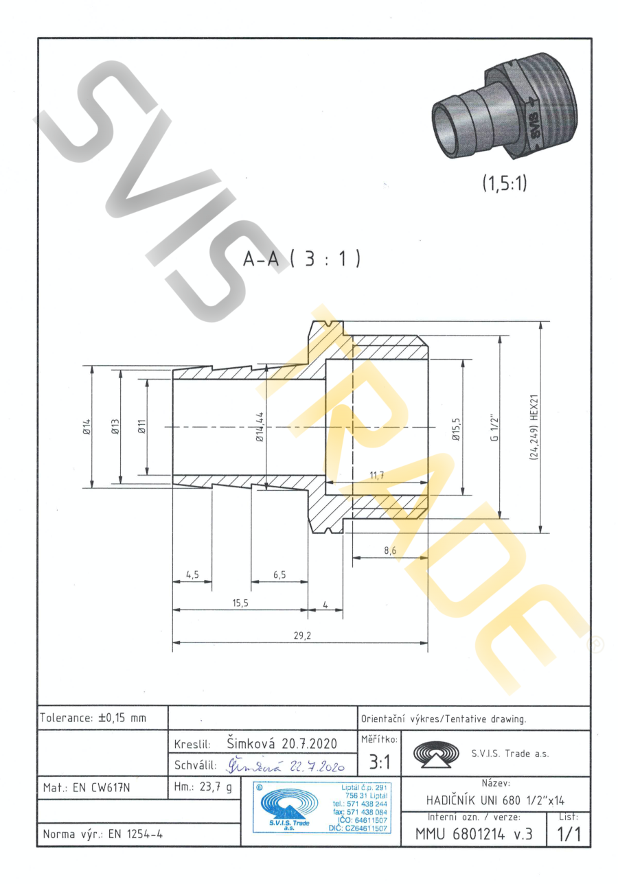 Fitinguri din alama CW617N. Fitingurile sunt specifice pentru aderarea filetelor in conformitate cu ISO 228-1. Design: fara tratament de suprafata.