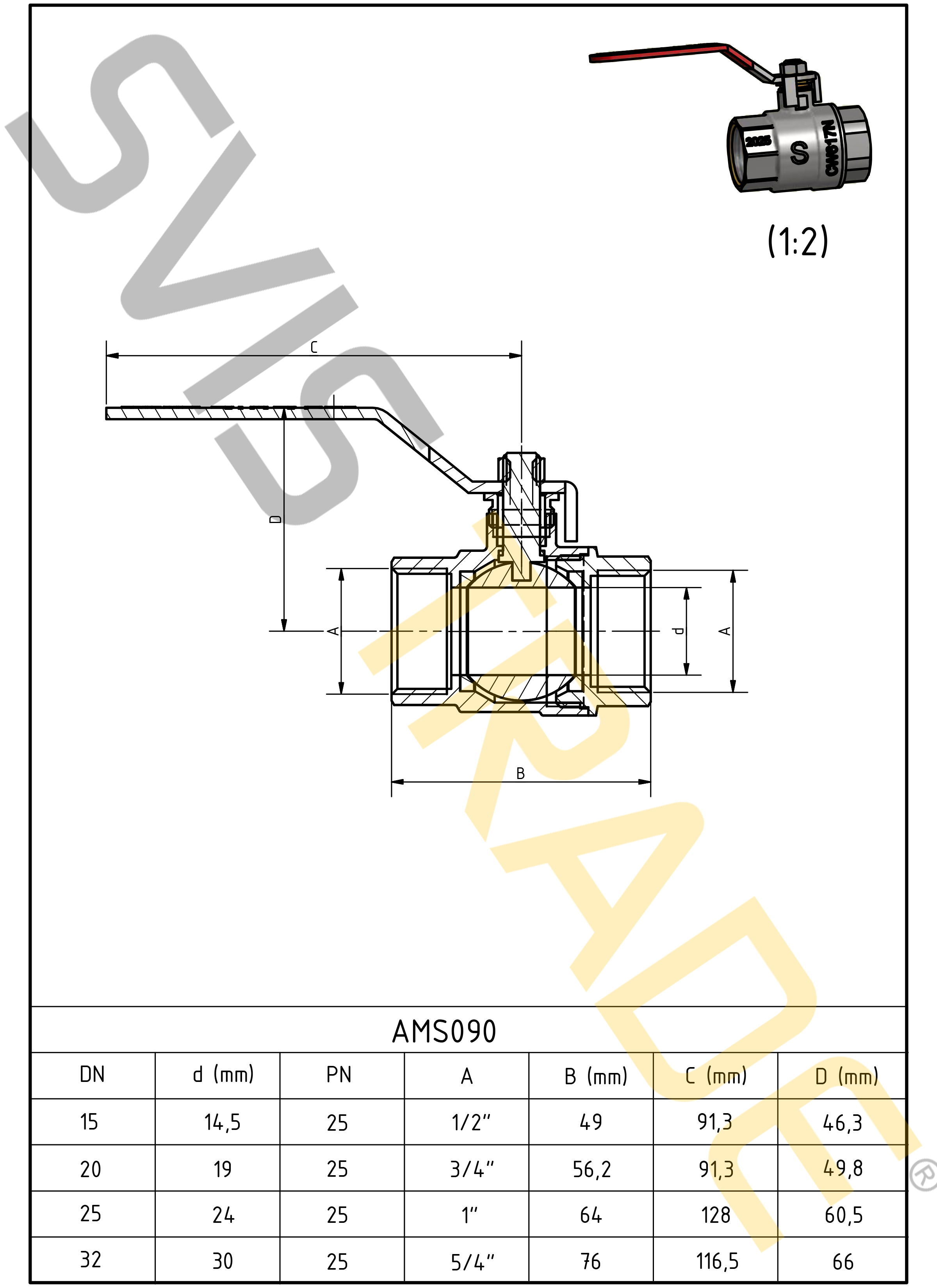 Este fabricat din alamă nichelată de înaltă calitate, potrivit pentru instalații cu apă potabilă și utilitară (soluție de glicol maxim 50% cu apă).
