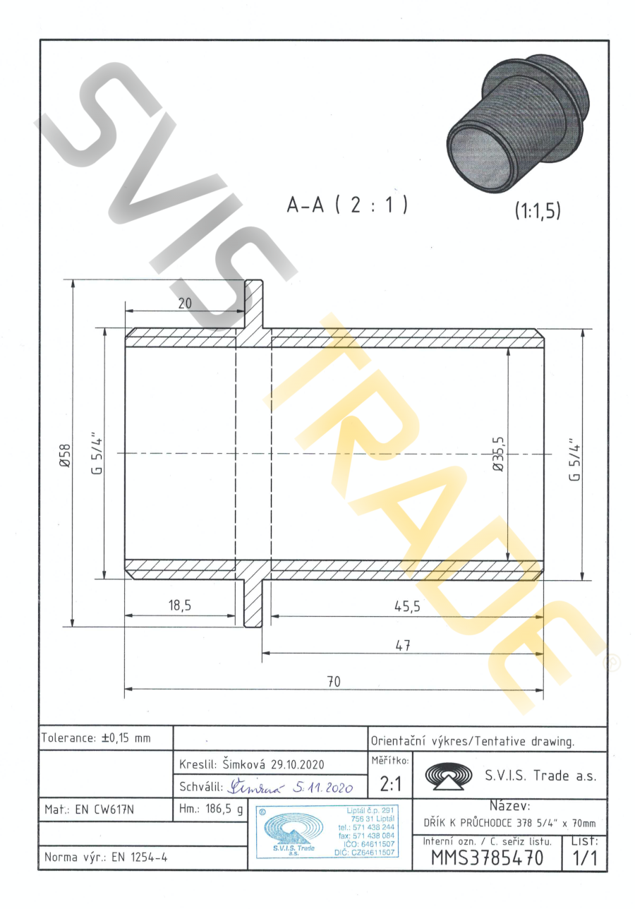 S.V.I.S. Trade a.s. - český výrobce fitinek je držitelem certifikátů ISO 9001, ISO 14001, OHSAS 18001. Na mosazné fitinky se vztahuje pojištění za škody pro území celé EU.