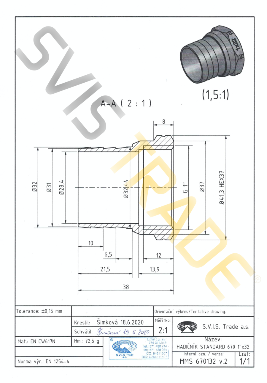 | Normy: | ČSN EN 1254-4, ČSN EN ISO 228-1 |